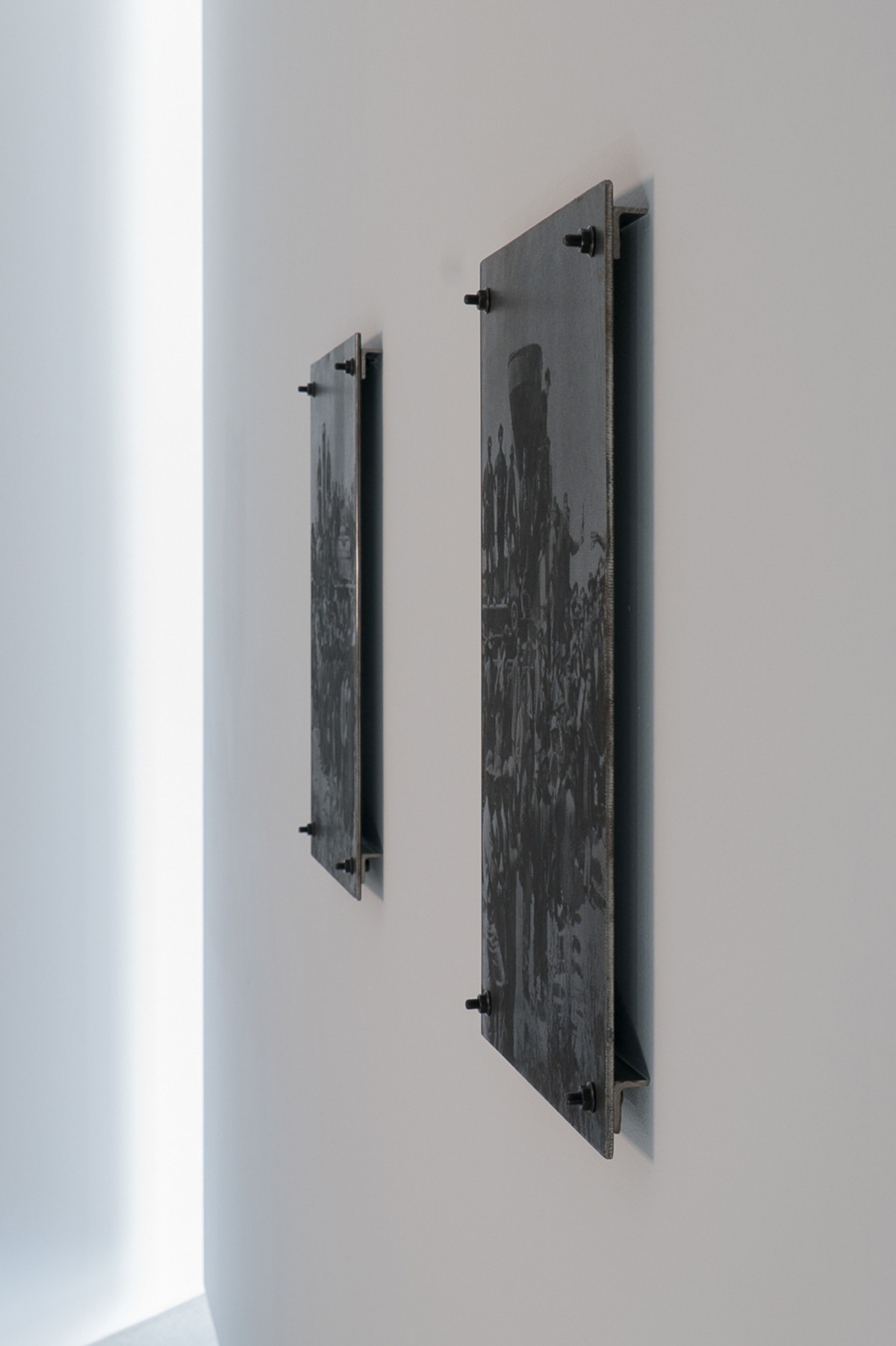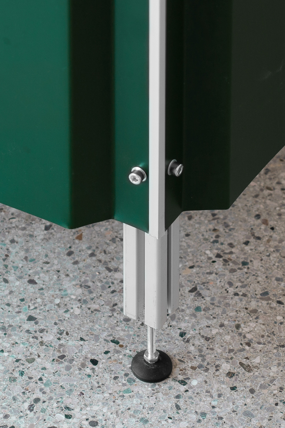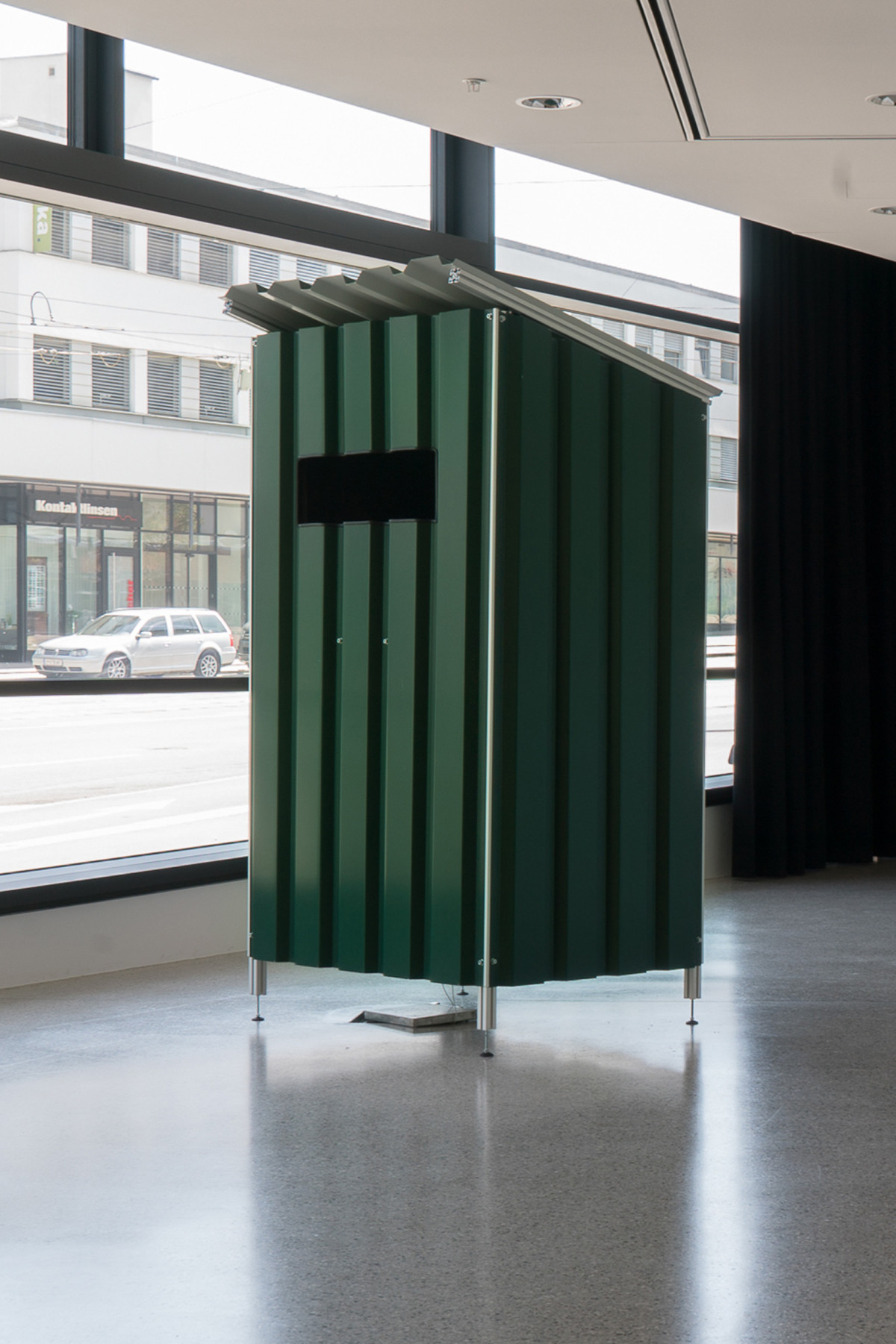audio recording (10min, looped), trapezoidal steel, aluminumprofiles, edge protectors, 8-nuts, M8 cylinder screws