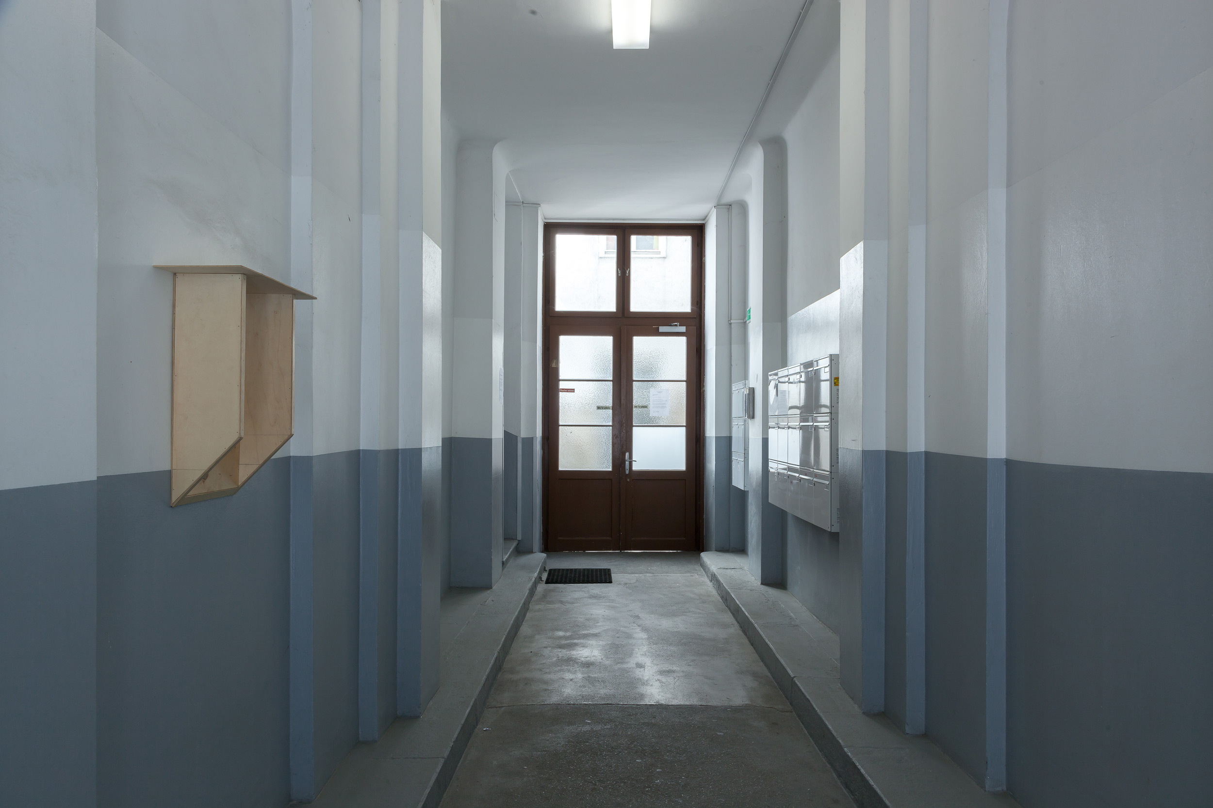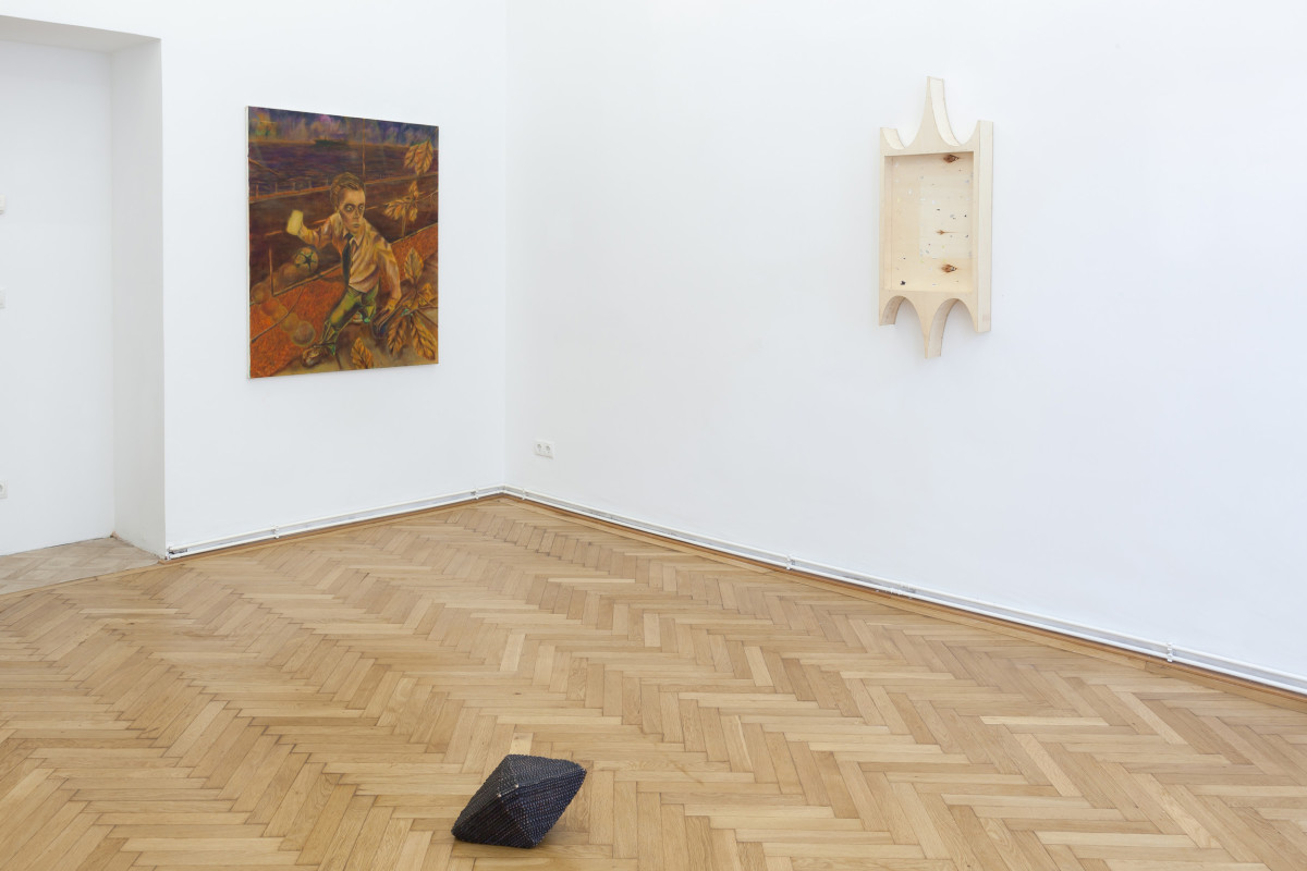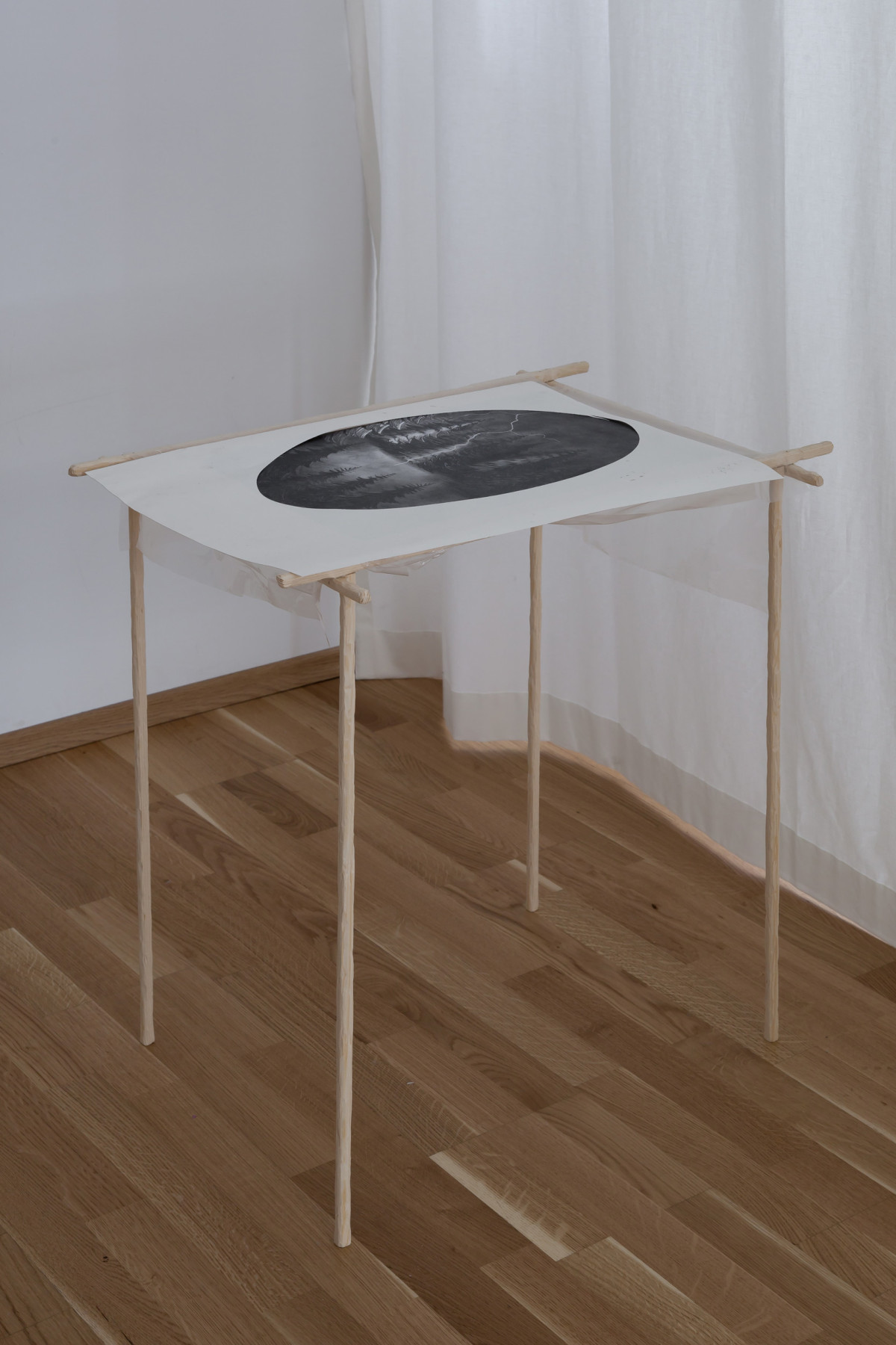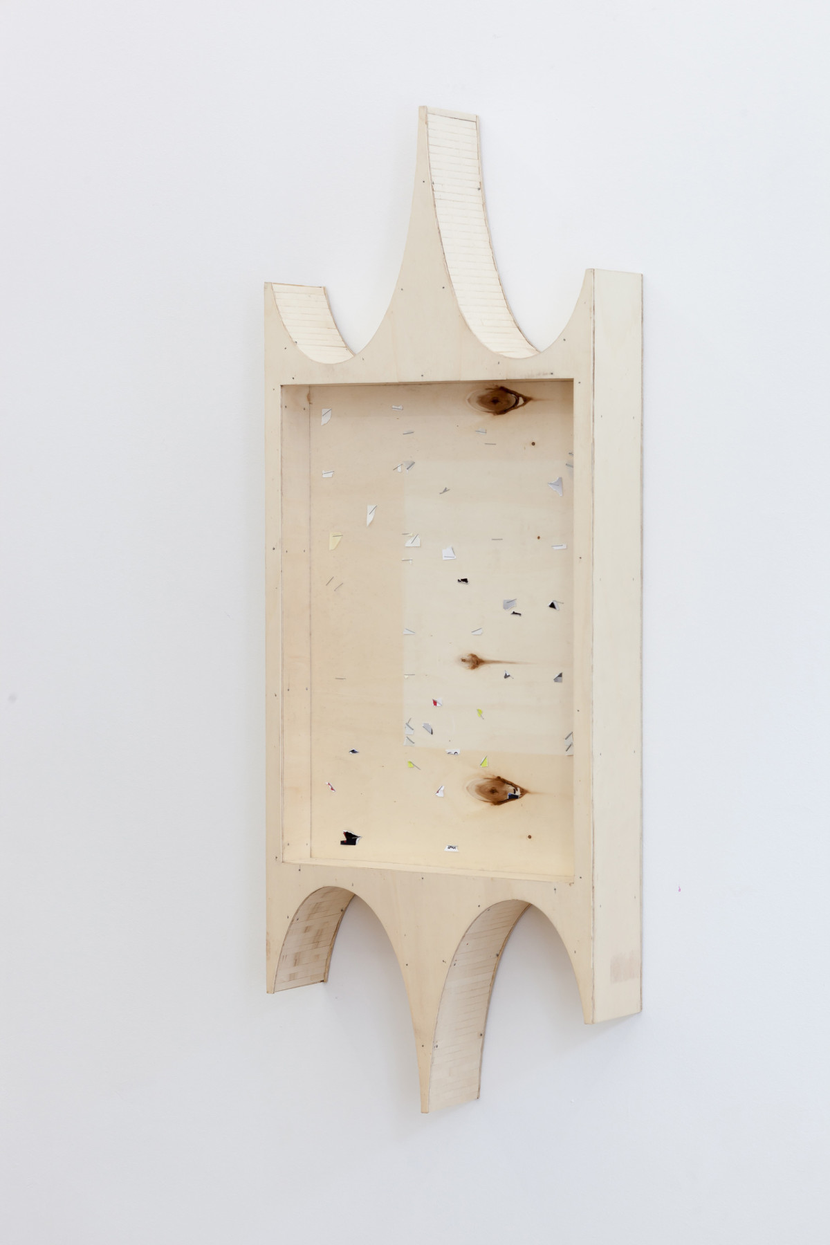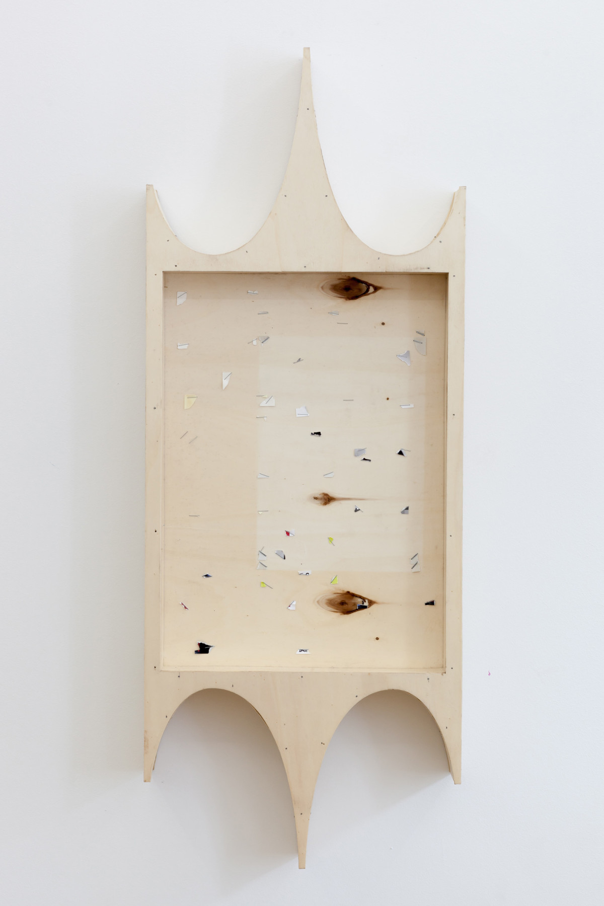 graphite on paper, construction wood,shrinkwrap, staples, brad nails, wax