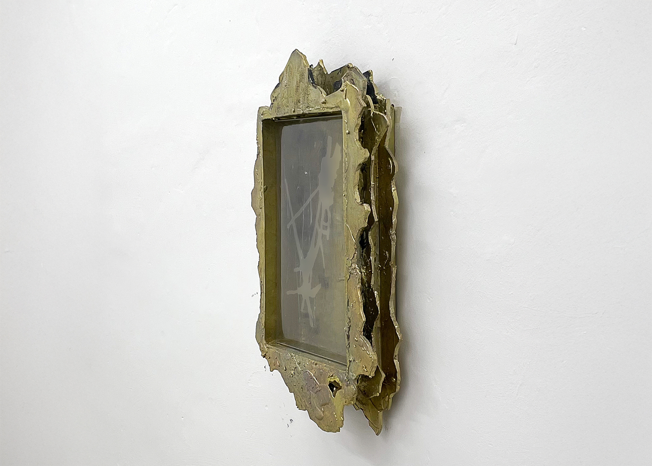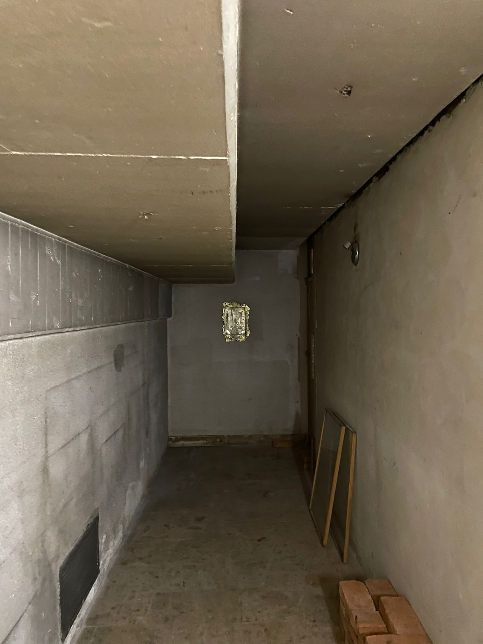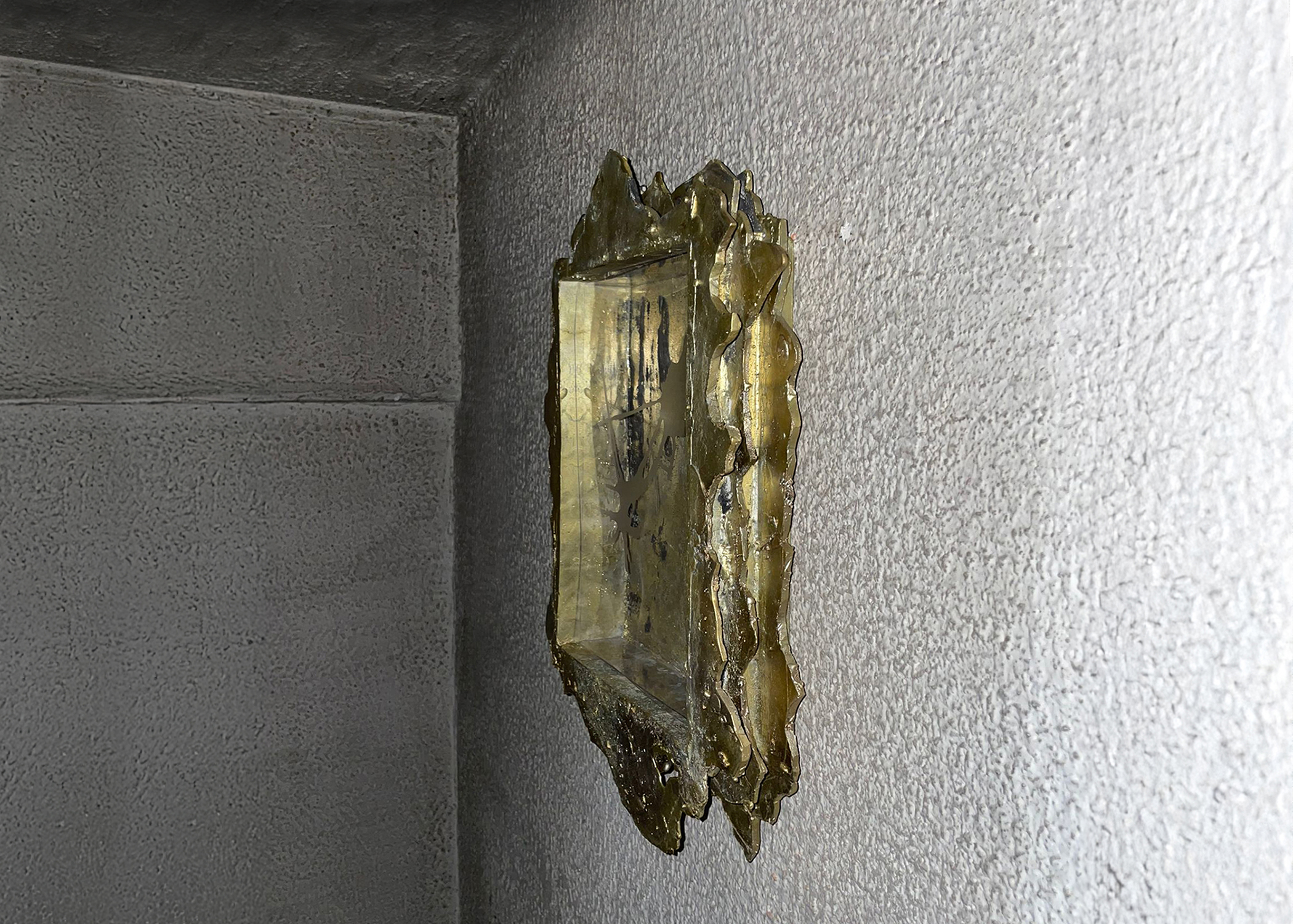brass cast, acrylic, plotted foil, installed in a utility closet